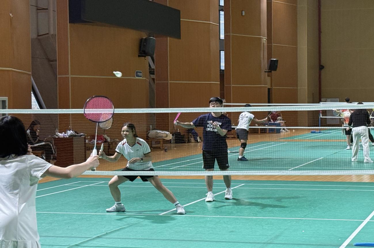 本次比赛共四支参赛队伍,项目涵盖混合双打、女子双打与男子双打,由师生搭档组队。下午两点,比赛正式开始。经抽签确定对阵后,初赛每局进行五轮激烈角逐,最终决出晋级决赛的队伍。赛场上,每支队伍从赛前默契的配合,到场上奋力拼杀、每球必争,始终沉浸在紧张而热烈的氛围中。精彩的球技引得观众席上喝彩不断。